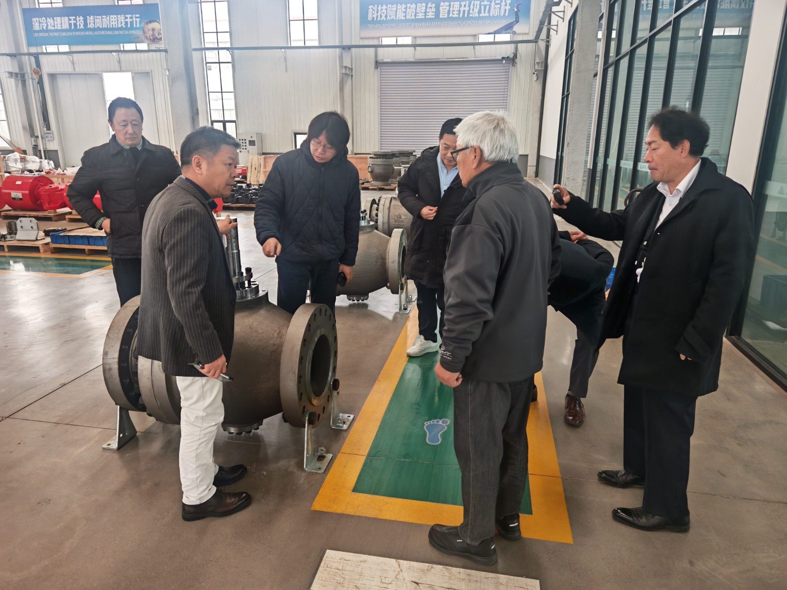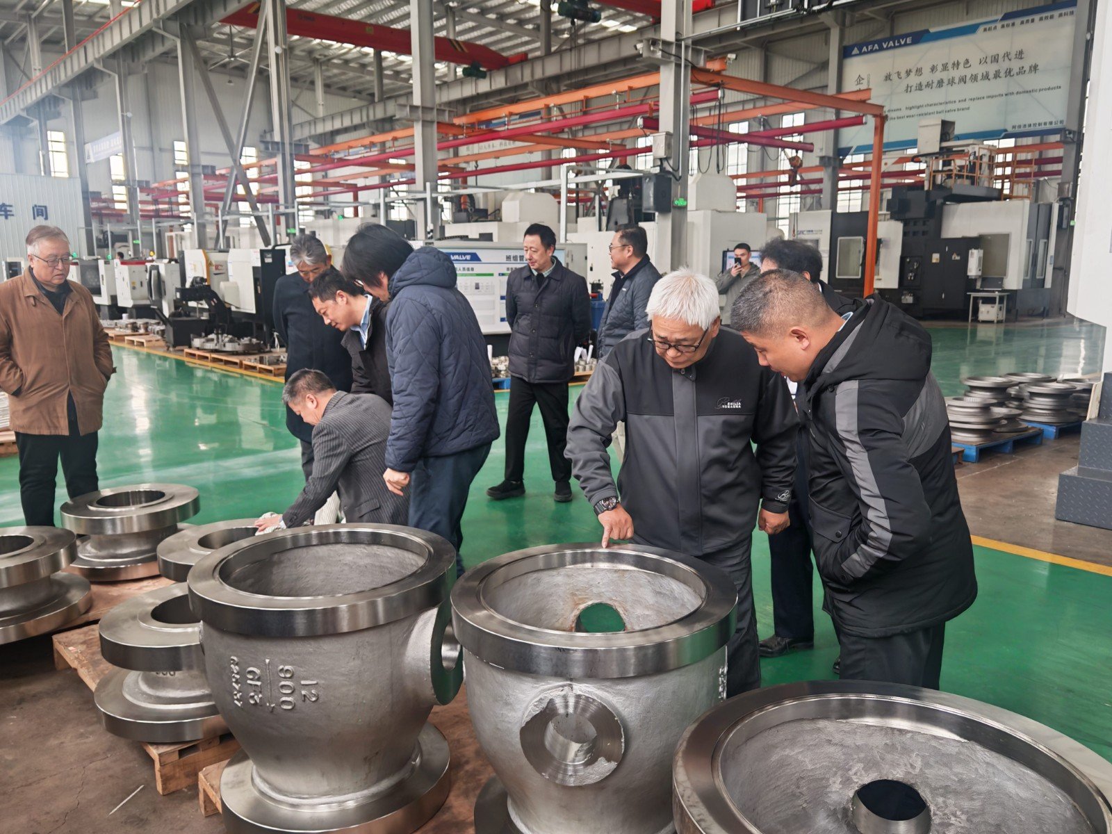 谢正泽董事长陪同日本九门制作所株式会社一行深入到生产车间进行了参观考察,深入公司各生产车间机加工、球体加工、喷涂、研磨、装配、试压、最终检验、涂装发货等主要工序过程以及加工制造过程中的半成品和生产完成的阀门成品存放区进行了参观。期间双方还举行了研讨会。会议上,谢正泽董事长详细介绍了AFA公司安全生产、经营管理、技术研发和市场推广等相关情况。公司宽阔的厂房、精良的装备、精细的管理以及员工丰富的专业知识和有素的工作能力,给客人留下了深刻良好的印象。来访客人对AFA公司产品结构、技术水平、市场定位和现场管理等给予了高度评价。
